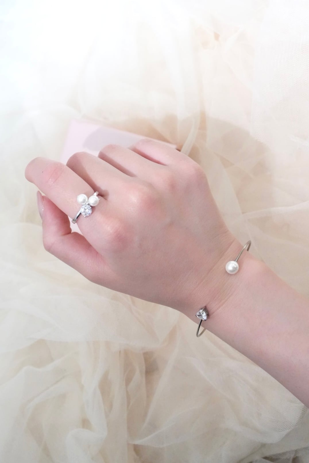手首が自然に華奢に見えるよう、計算し尽くされたバングルのラインが魅力。