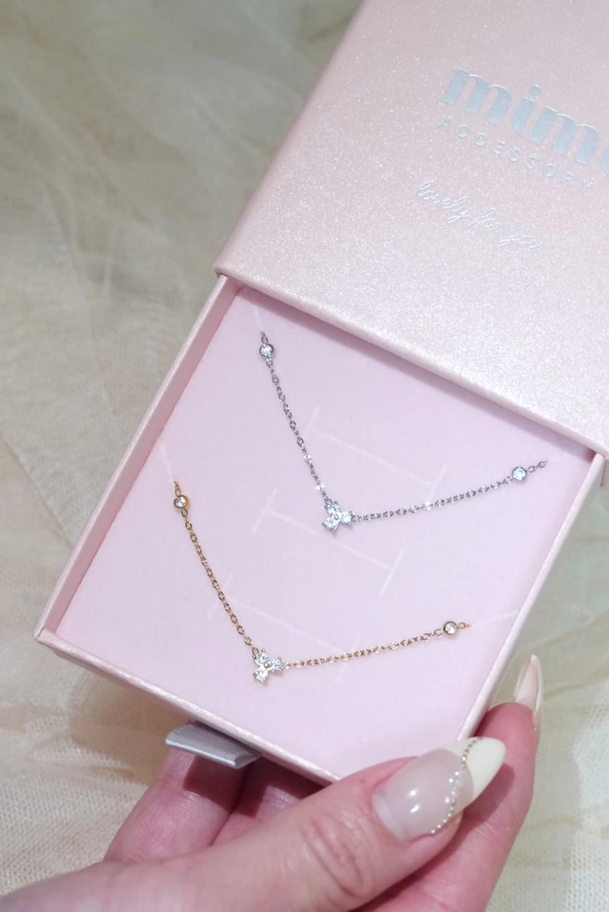 チェーンやジルコニアは華奢ながらもデコルテをキラッと華やかに見せてくれます。